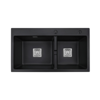 Quartz OEM Alta Qualidade Topmount 33*18*9 "Retangular Preto Granito Duplo Sink Bowl Composto Granito Sink Quartz Kitchen Sink